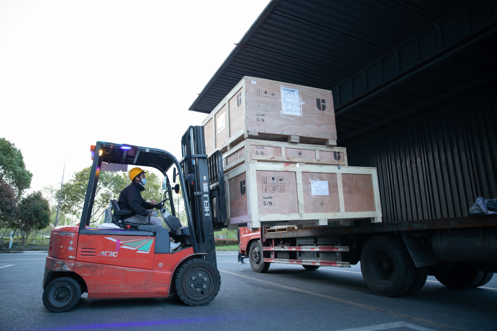 联影医疗装运货车正准备将疫情前线急需的CT设备发往医院。采访对象供图