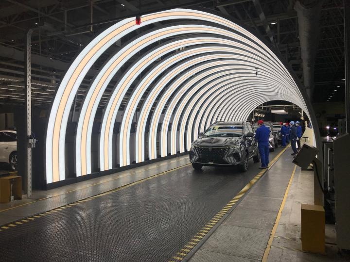 在上汽集团临港乘用车工厂,一辆辆整车正在下线。新华社记者 周蕊 摄