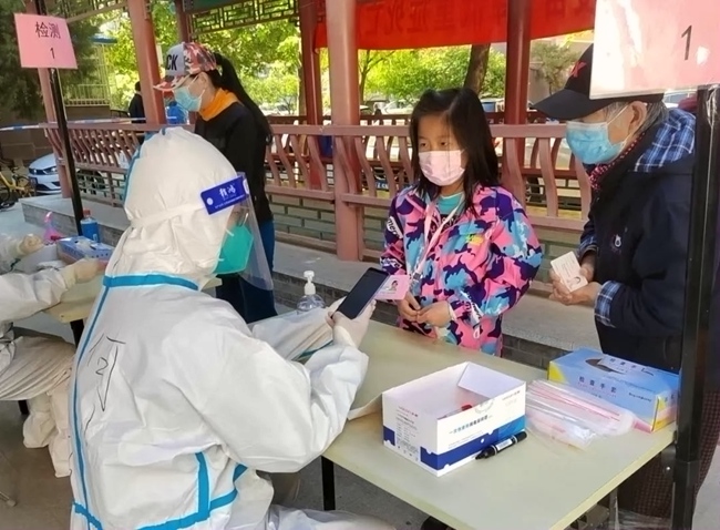 “让我去封控区,我年轻,身体好!”4月26日,红庙北里小区部分区域实施封(管)控,朝阳区八里庄街道社区卫生服务中心护士刘彩丽主动请缨,就这样,22岁的刘彩丽和其他4名同事承担起5个单元门的核酸采样任务。