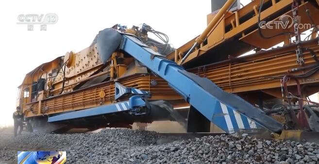 呼和浩特工务机械段清筛二车间主任 张志军:受风沙影响,这个区段路基里的含沙量达到了每公里700方左右,威胁到了列车的运行安全。我们现在要做的就是把钢轨下面的石砟全部都掏出来,把泥土和沙子分离出去,恢复路基的正常功能。