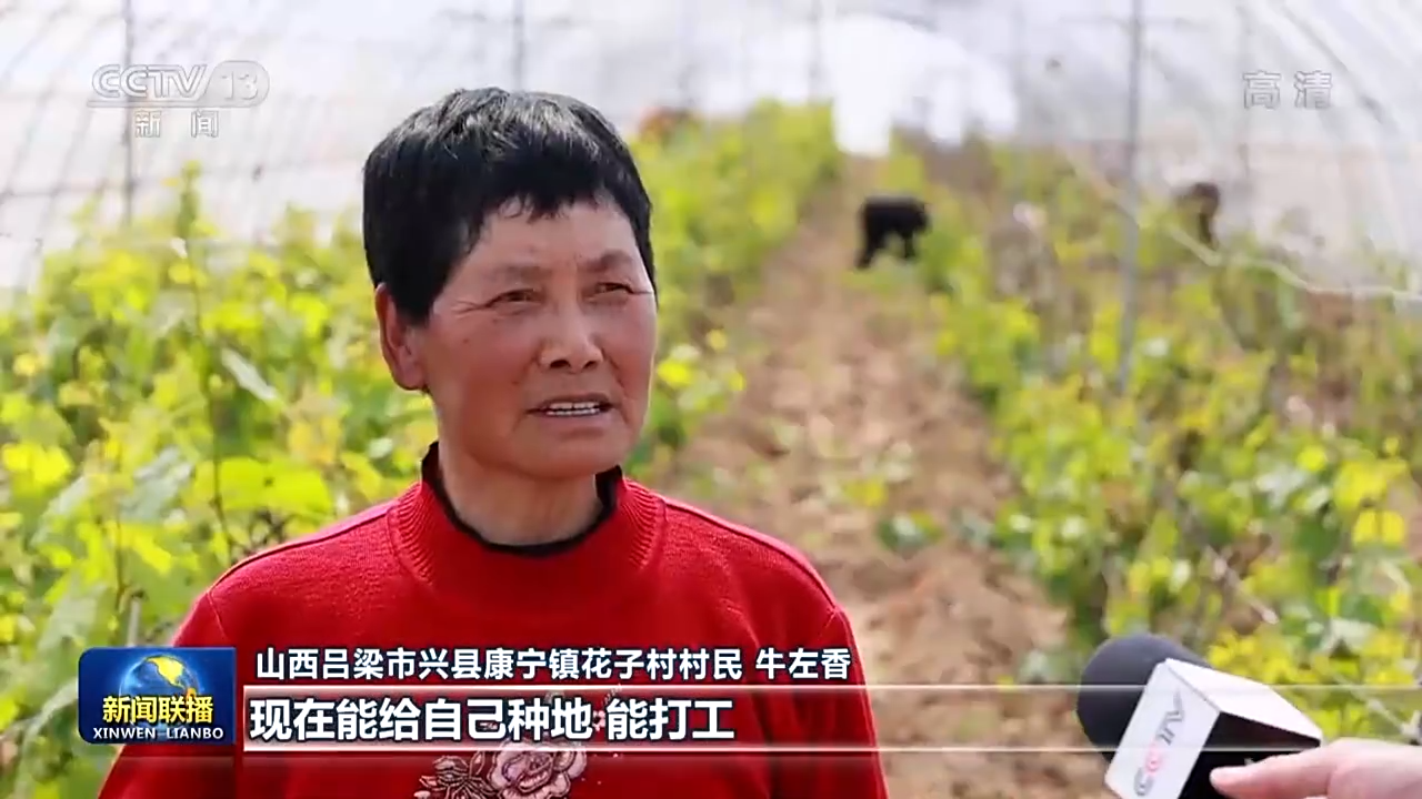 山西吕梁市兴县康宁镇花子村村民 牛左香:原来靠天吃饭,现在能给自己种地、能打工,收入的来源更丰富了,我们两个一年能收入三四万。