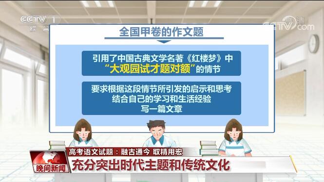 央视网消息:每年高考语文的试题,尤其是作文题目都备受关注。今年高考语文试题充分突出时代主题和传统文化,体现了对学生打牢基础、提升能力素养的要求。