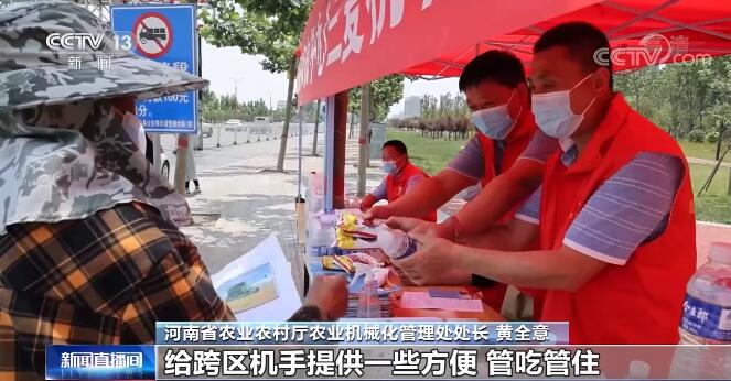 河南省农业农村厅农业机械化管理处处长 黄全意:为确保小麦颗粒归仓,全省设立了816条跨区作业“绿色通道”,发放5万张跨区作业证,给跨区机手提供一些方便,管吃管住。