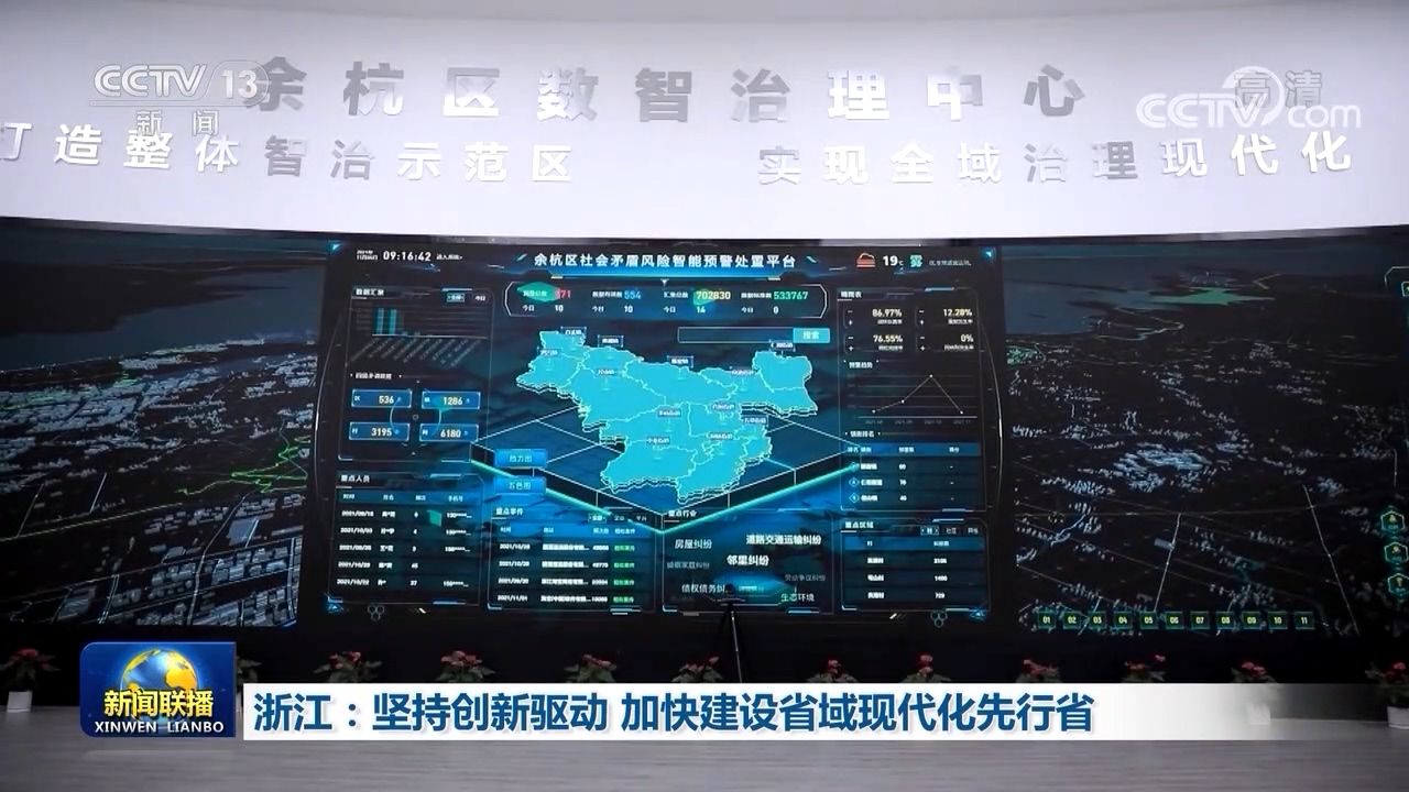 央视网消息(新闻联播):浙江坚持创新驱动,以数字化改革为牵引,加快建设省域现代化先行省。