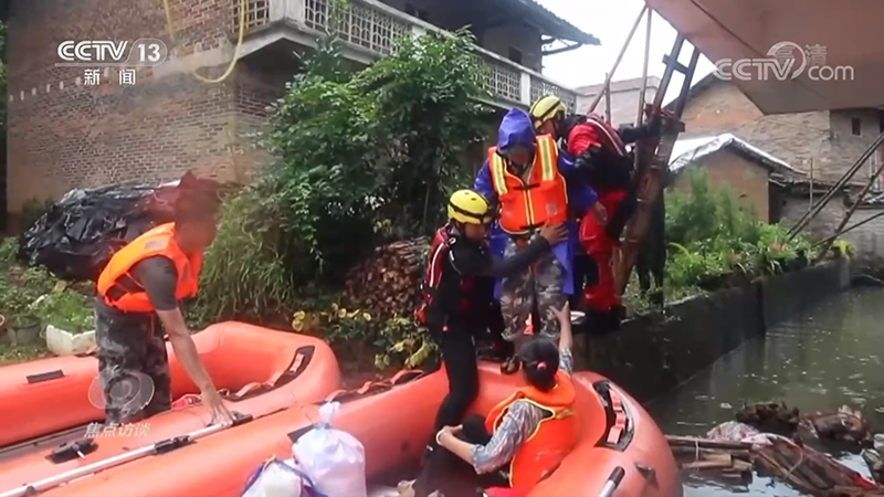 6月20日,受持续降雨和上游来水影响,广东肇庆封开县各流域水位持续上涨,流经封开县平凤镇的蟠龙河发生超警洪水。洪水倒灌进蟠龙村,积水普遍超过2米,多栋民房一楼被淹,大量群众被困楼上等待救援,其中有多位老人和儿童。消防救援人员立即调集7艘橡皮艇进村救援。由于被困群众较多,救援人员兵分多路,挨家挨户进行排查。由于一楼通道彻底被淹,消防人员找来梯子,帮助被困楼上的群众穿上救生衣,小心转移。