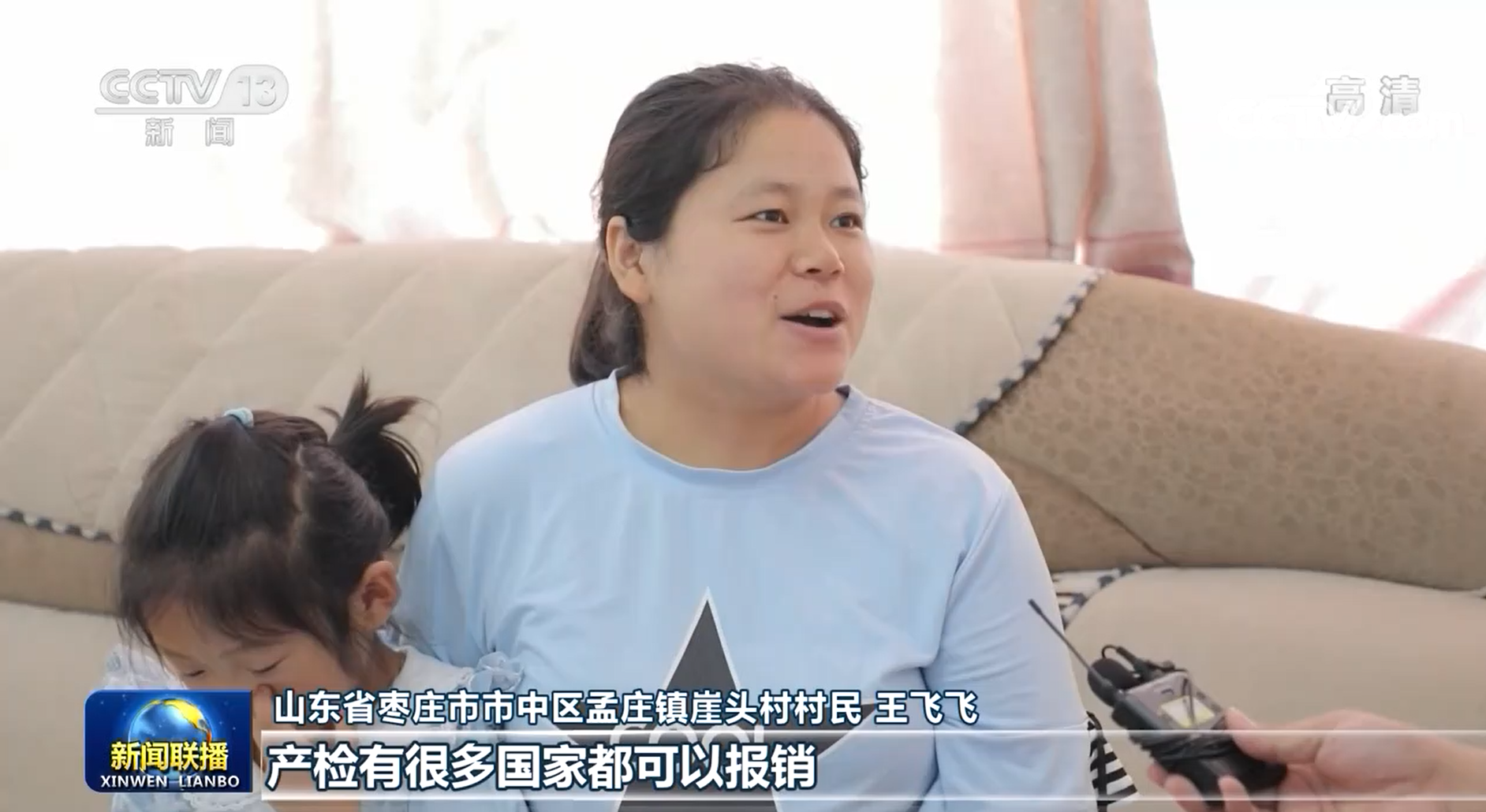 山东省枣庄市市中区孟庄镇崖头村村民 王飞飞:现在国家政策比较好,产检有很多国家都可以报销,现在怀了三宝了,一家人热热闹闹,很开心。