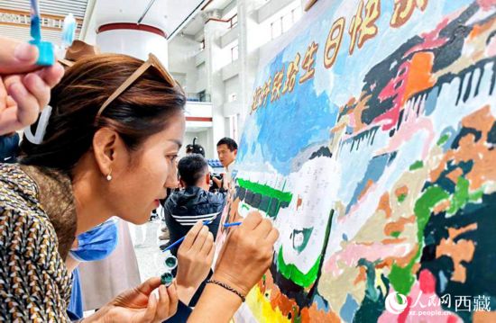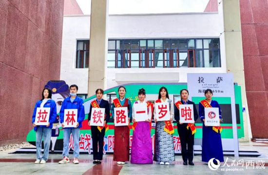 拉林铁路开通一周年,旅客祝拉林铁路生日快乐。人民网 李海霞摄