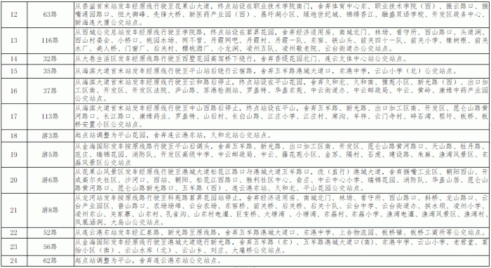 采取甩站、绕行等方式,对涉及公交线路走向和经停站点进行调整(线路运营调整情况详见附表),线路及车辆动态信息可以在连云港市“智慧港城”APP查询。