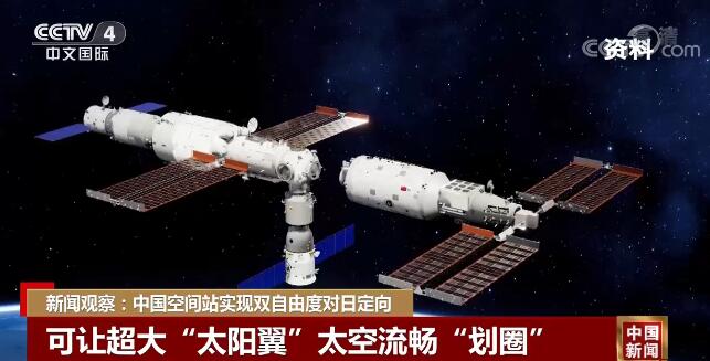 央视网消息:记者从中国航天科技集团八院获悉,在问天实验舱发射几天后,中国首个大型对日定向装置正式登台亮相,完成了一系列在轨性能测试,各项指标均表现优异,中国空间站实现了双自由度对日定向。