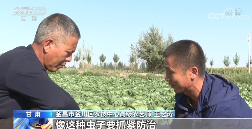 这几天,家住金川区双湾镇古城村的农户黄发兵正带领工人在地里除草,趁着春小麦刚刚收完,他又赶在入秋前在2200亩地里种上了娃娃菜,由于今年是他第一年尝试粮菜间作种植模式,加之高温天气频现,复种的高原夏菜进入到病虫害的高发期,农技中心工作人员隔三差五就跑到田间地头查看叶片长势,对农户进行种植技术的面对面指导。