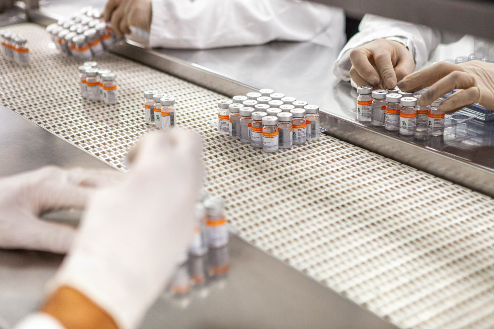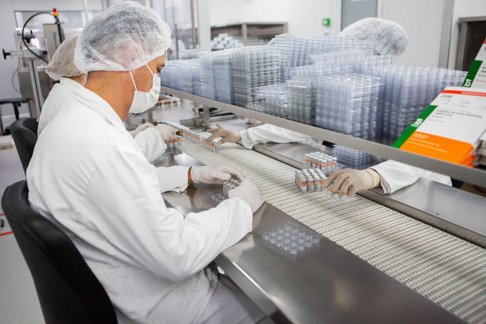 ↑这是2022年8月31日在巴西圣保罗州布坦坦研究所拍摄的克尔来福新冠疫苗生产线。