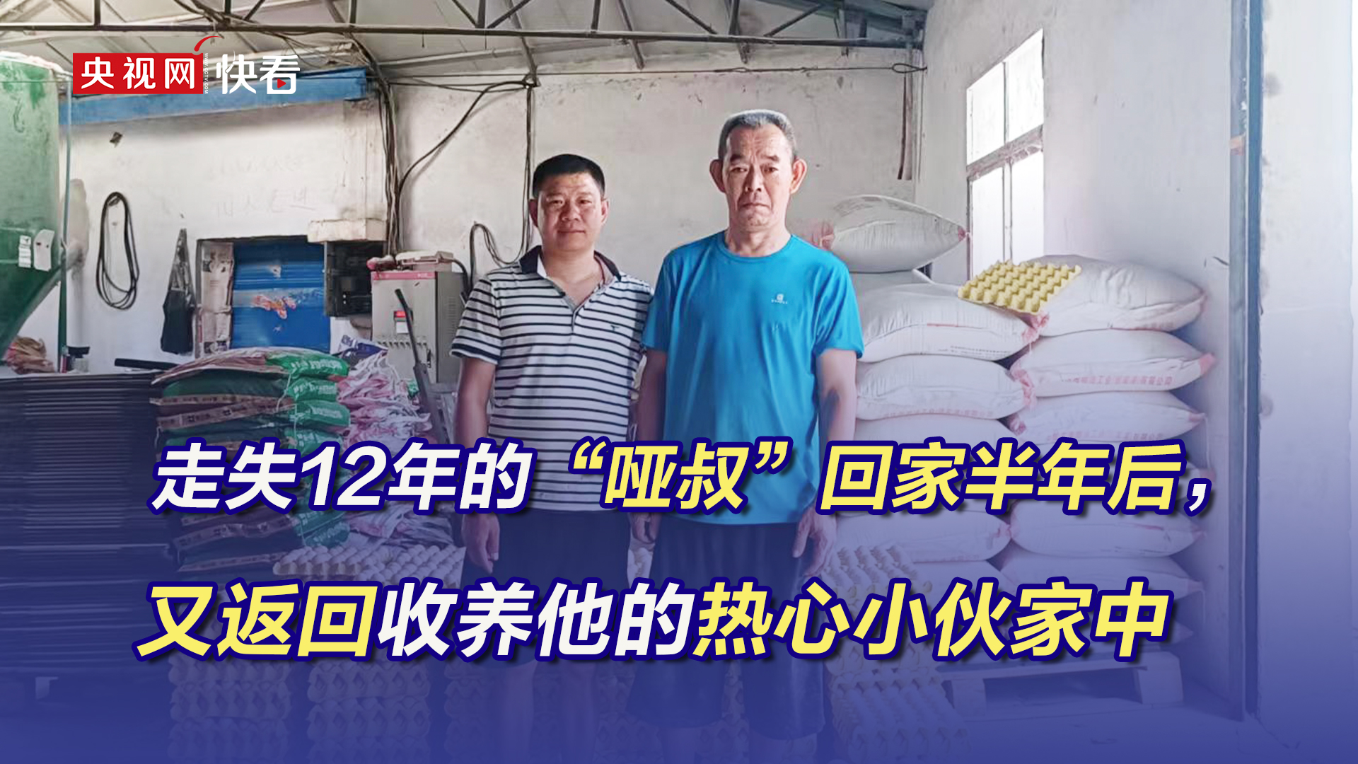 央视网消息(记者 豆瑞华):2021年11月,一个走失12年的聋哑老人回家的视频引起网友关注,12年来,湖北热心小伙小峰一直收留他、照顾他,并鼓励他找到了远在河北的亲人。今年6月,“哑叔”从河北返回了湖北省老河口市薛集镇,又回到了小峰的身边。