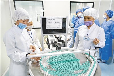 2021年9月,在乌兹别克斯坦制药企业祖拉贝克实验室有限公司,中国新冠重组蛋白疫苗正式投产。扎法尔摄(新华社发)