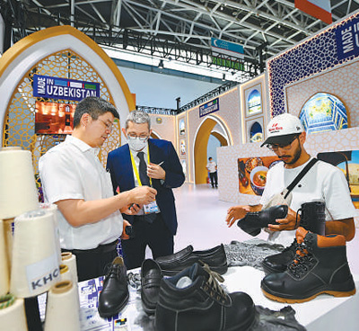 2022年8月14日,第六届丝绸之路国际博览会主宾国乌兹别克斯坦展区。新华社记者 李一博摄