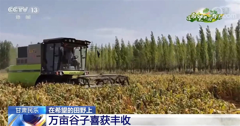 这两天,甘肃张掖民乐县的万亩谷子喜获丰收。收割机在田间来回穿梭,谷子地里一片丰收景象。据了解,地处河西走廊的民乐县气候、日照等适宜谷子和高粱的生长,当地积极与农业科研院所合作,推广谷子和高粱交替倒茬技术,粮食产量逐年递增。谷子由去年的亩产750斤增加到850斤左右,如今,谷子已成为当地农民的主要致富产业。