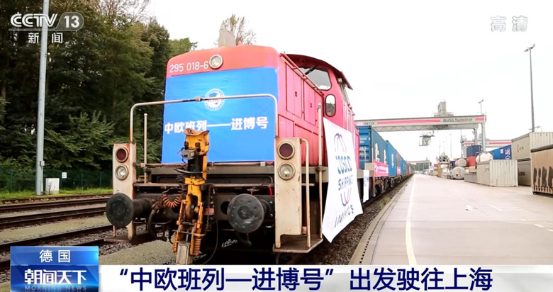 总台记者 阮佳闻:“中欧班列—进博号”连续两年运行,不仅标志着上海与汉堡之间的中欧班列线路正实现双向运输平衡,也继续为德国企业赴上海参展进博会提供极大便利。