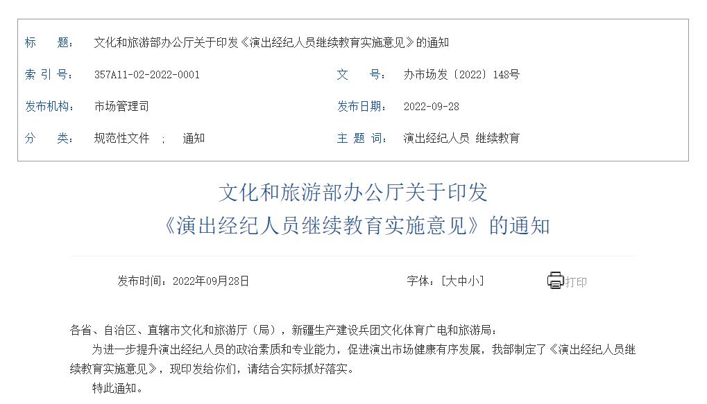 正在阅读:文化和旅游部发布《演出经纪人员继续教育实施意见》