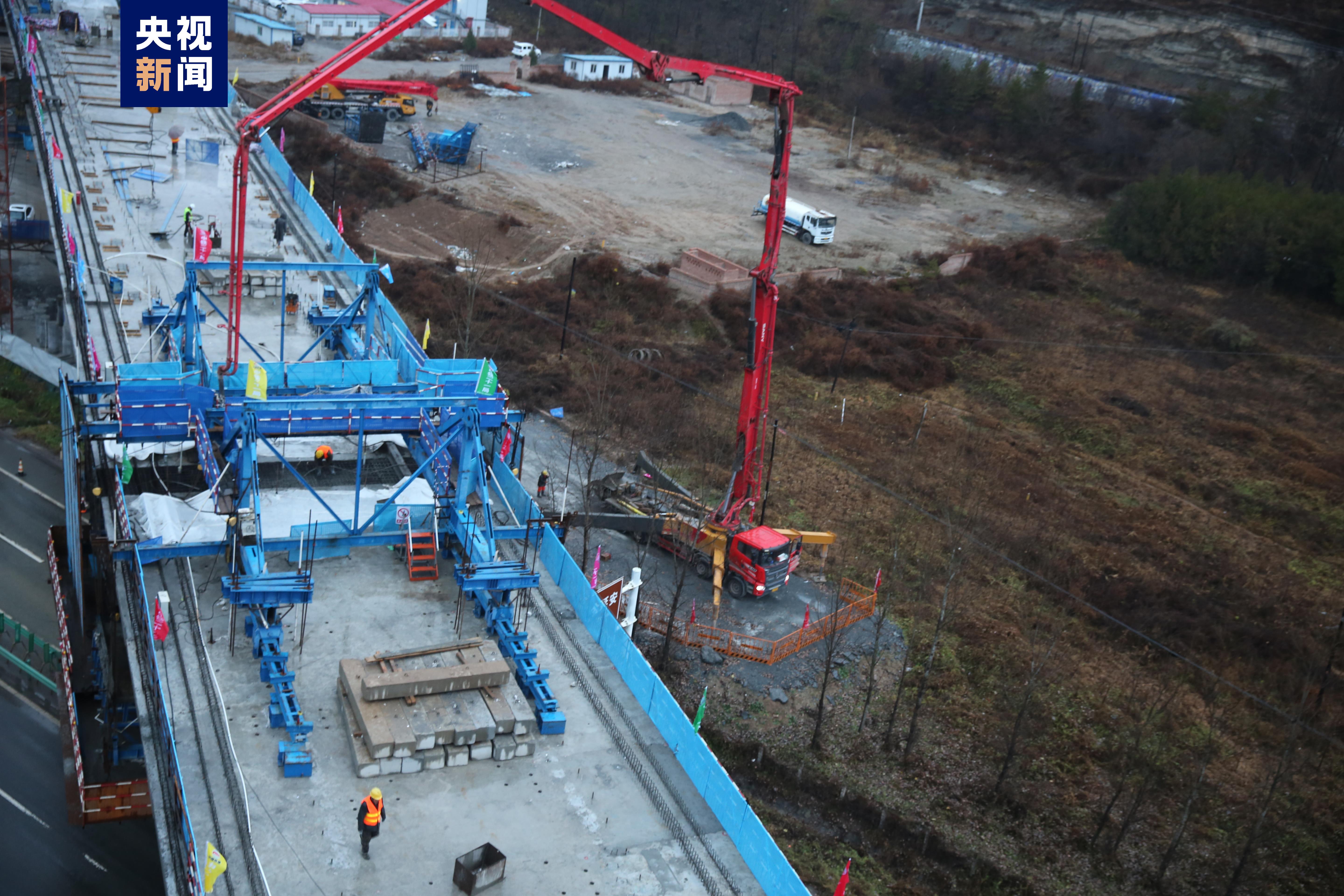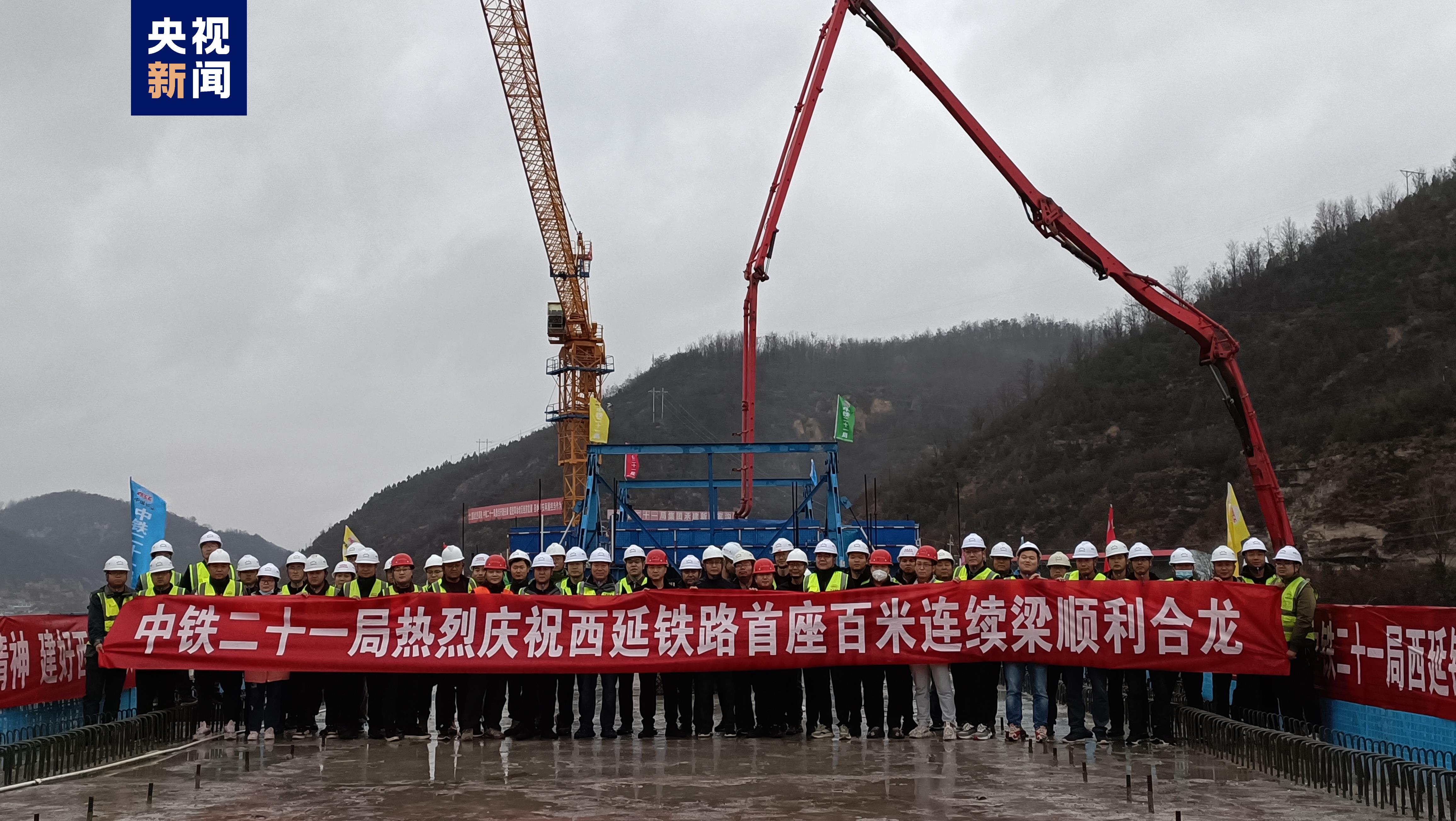 11月11日19时,西延高铁首座跨高速公路百米连续梁——杨家湾特大桥连续梁顺利合龙。