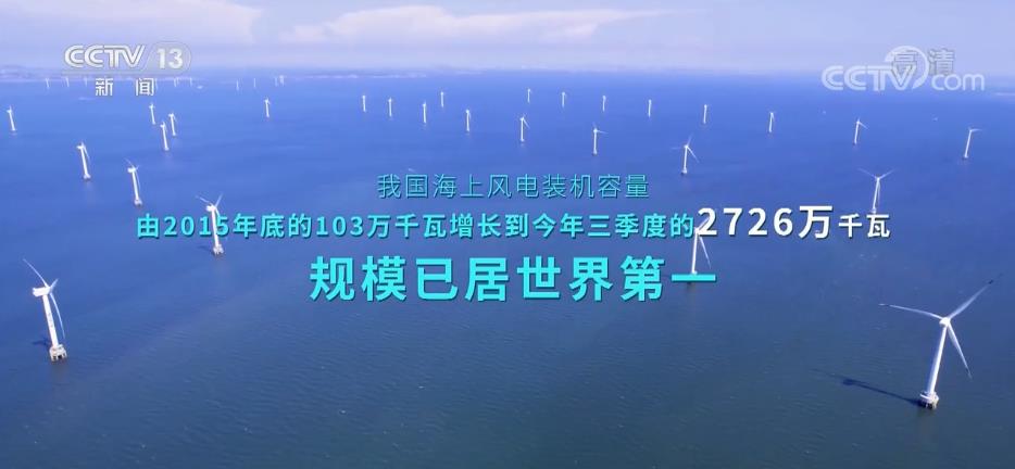 我国海上风电装机容量由2015年底的103万千瓦增长到2022年三季度的2726万千瓦,规模已居世界第一。