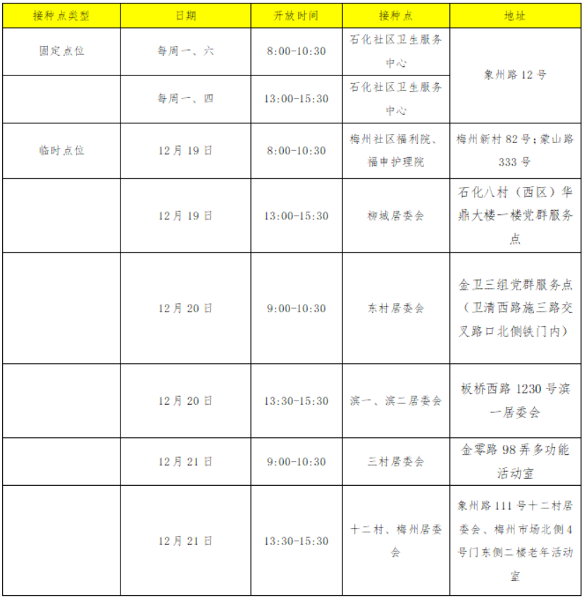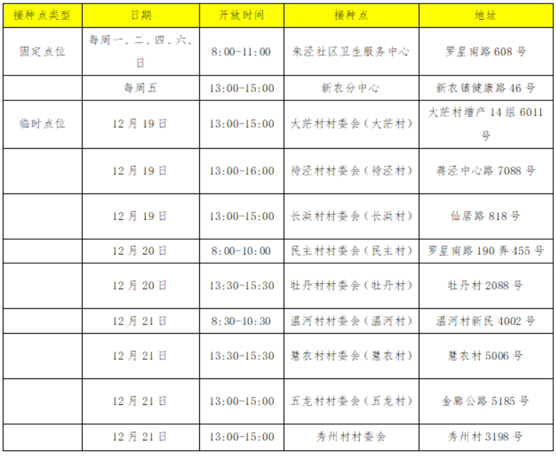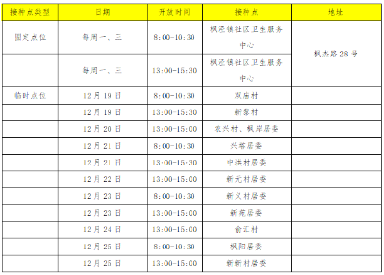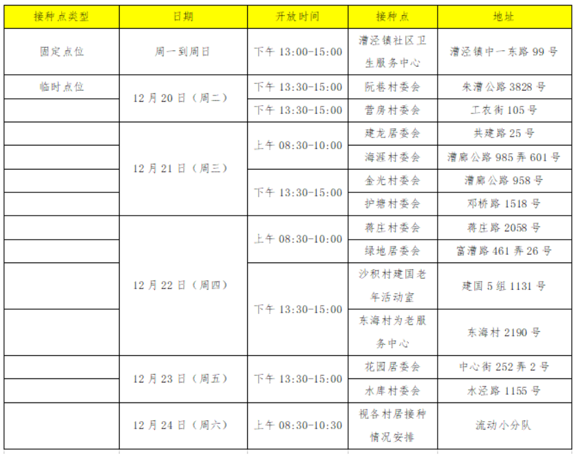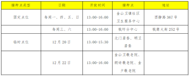 附:金山区各街镇(高新区)新冠病毒疫苗接种安排
