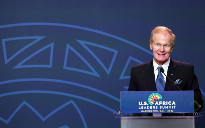 2022年12月13日,美国航空航天局局长比尔·尼尔森在华盛顿举行的美非领导人峰会太空论坛上发表讲话。