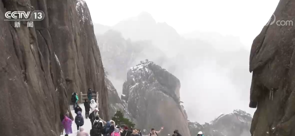 央视网消息:昨天(1月15日),安徽黄山风景区迎来今年的首场降雪,同时出现了雾凇、云海奇观,吸引了众多游客登山赏雪。