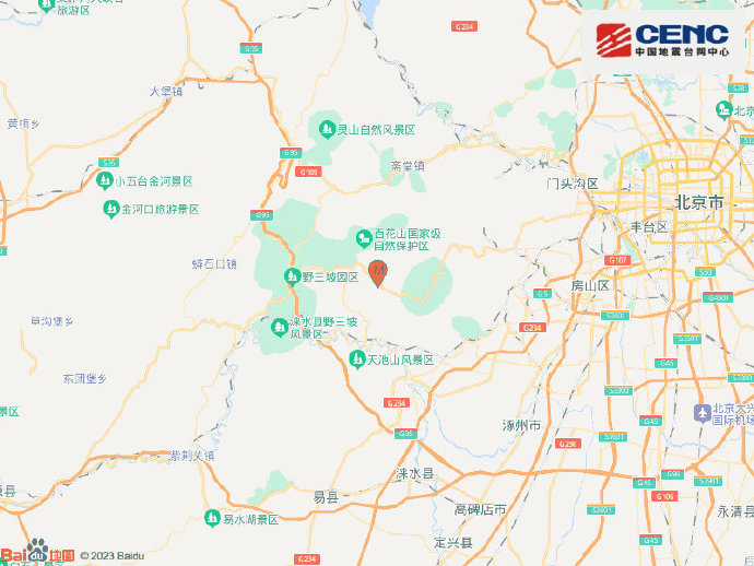 北京房山区发生2.8级地震 震源深度14千米