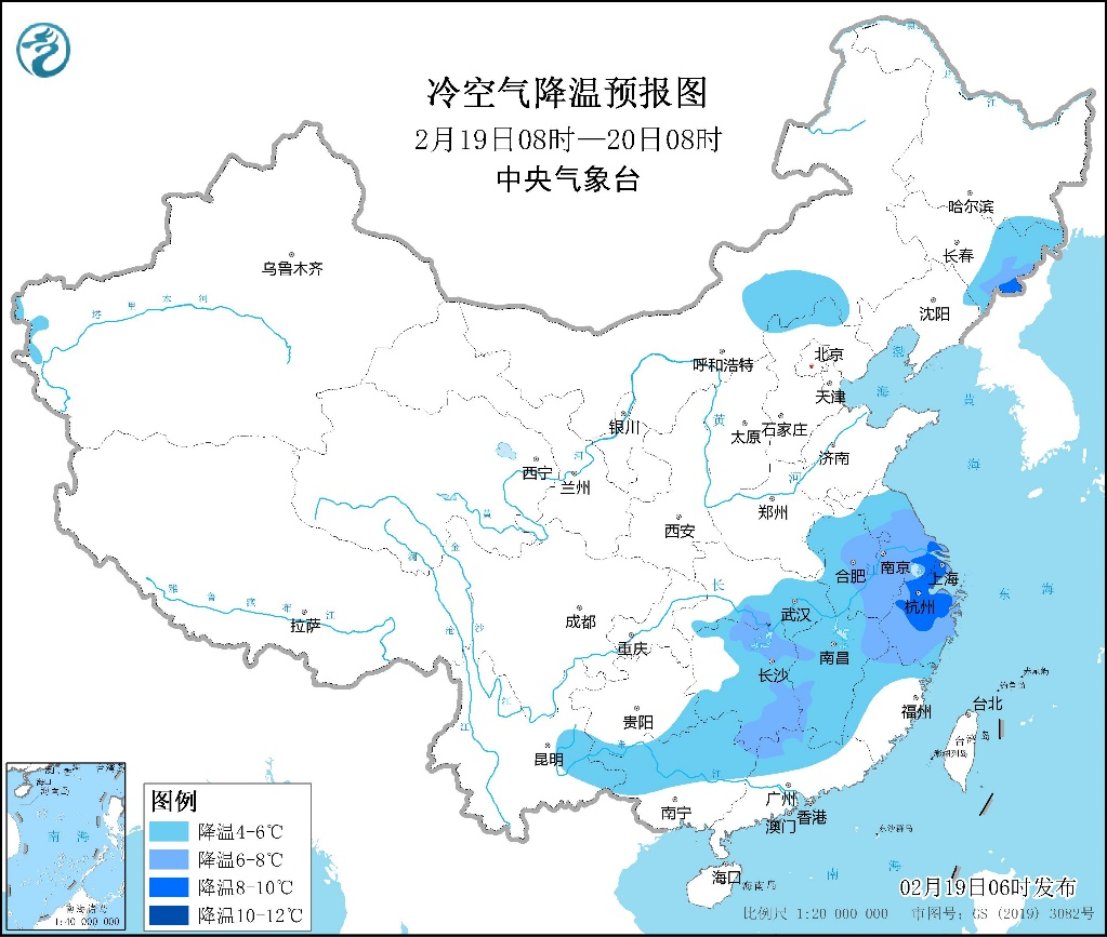 未来三天,冷空气的残余势力将继续南下影响江淮、江南及华南等地,带来4~6℃、局地8℃以上降温,部分地区并伴有4~6级风;东部和南部海域有6~8级、阵风9级大风。