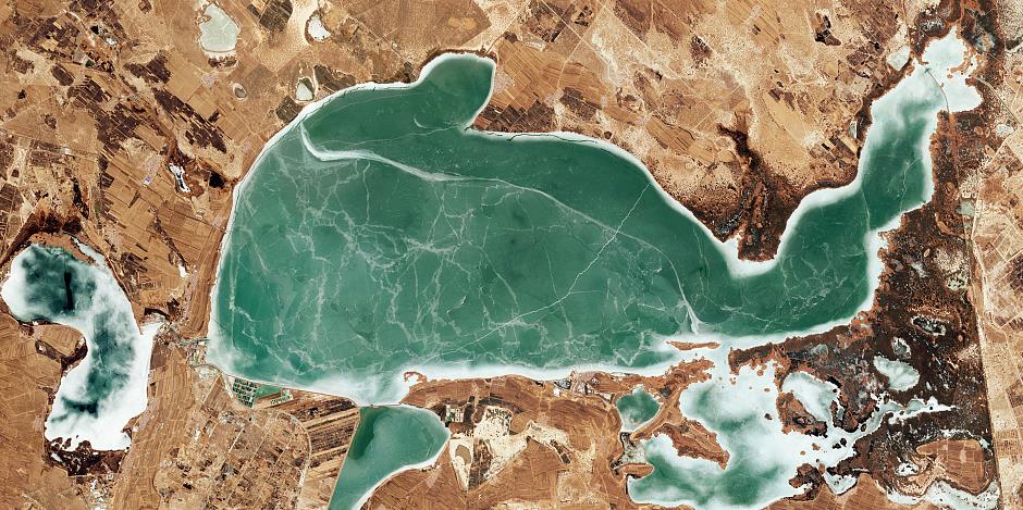 吉林松原:卫星图片下查干湖形状神似鲸鱼