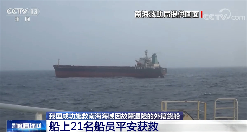 央视网消息:近日,在历经10多天艰辛远航救助后,一艘在南沙群岛万安滩西南约120海里处发生故障险情的外籍货船获我国交通运输部南海救助局成功施救,船上21名船员平安。