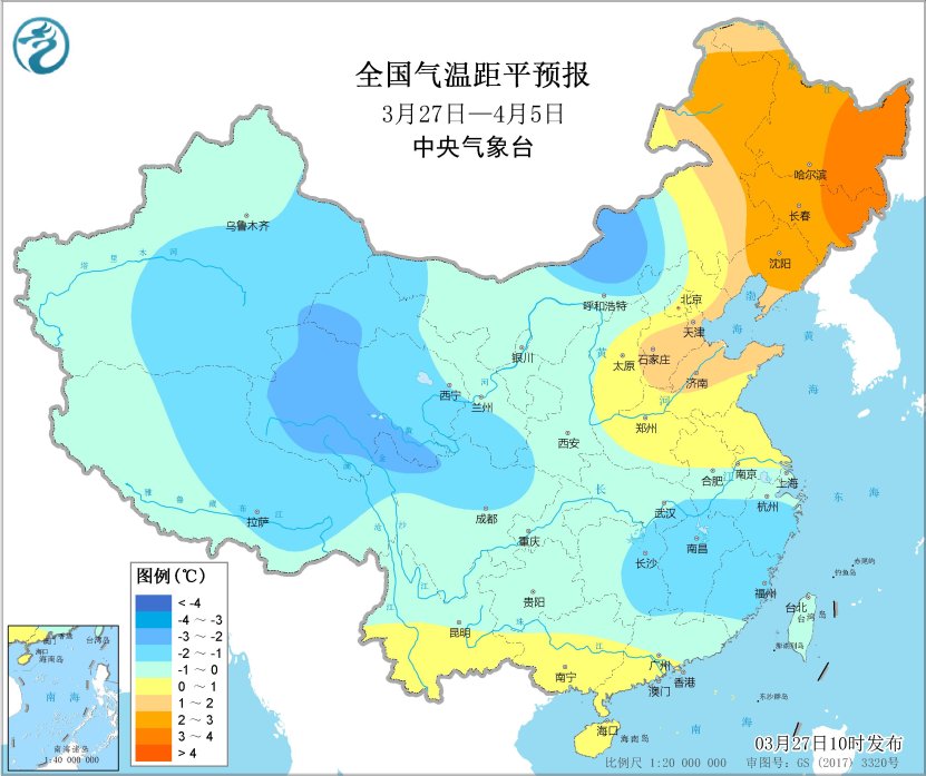 4月1-4日,将有一次较强冷空气过程影响我国大部。