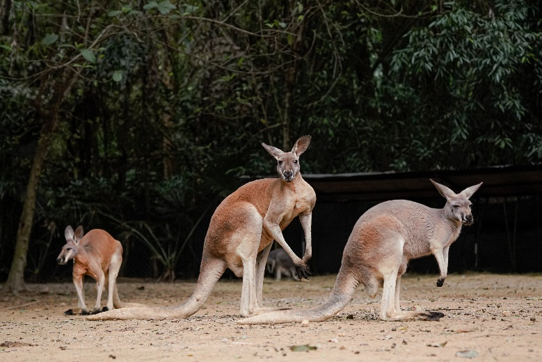 在长隆野生动物世界,我们还可以见到其他大洋洲朋友,比如两性外表差异最明显的鹦鹉——折衷鹦鹉,在天鹅种类中脖子最长的黑天鹅,以及有着“多功能尾巴”的袋鼠等等。