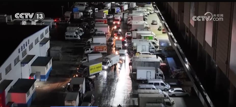 凌晨2点多,市场交易进入高峰期,进出停车场的货车也出现了短暂的拥堵。靠近通道和出入口的黄金地点,客流更大、货更好卖,大家都想抢占。刘轻舟的工作就是让各种车辆都能最快速地停到规定区域,要看先来后到,还要兼顾品种货区。