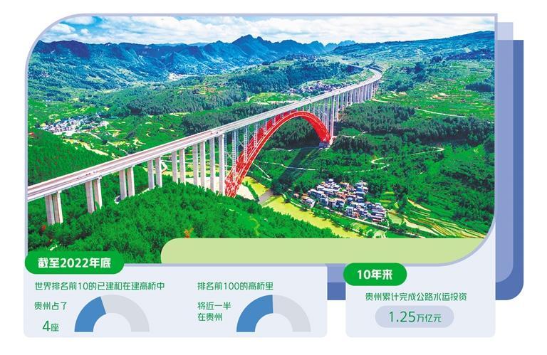 贵州桥是一张世界级名片。截至2022年底,世界排名前10的已建和在建高桥中,贵州占了4座;排名前100的高桥里,将近一半在贵州。