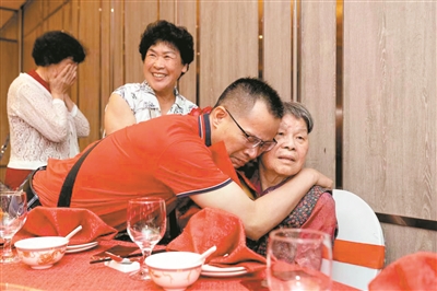 邓经思抱着姑姑林玉招喜极而泣。