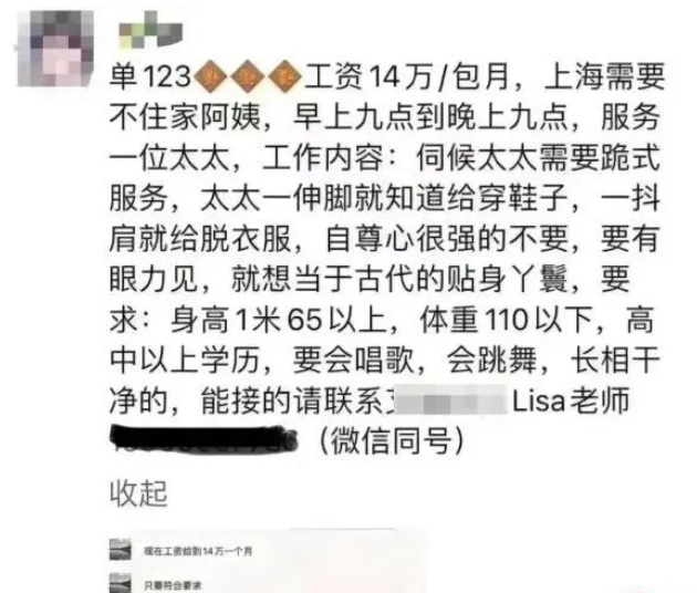 “14万月薪招聘跪式保姆”一事有了最新进展。
