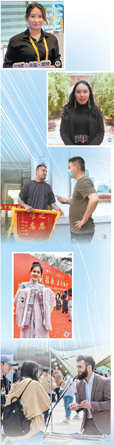 最近,乌兹别克斯坦青年阿森贝克(中文名李辰阳)(图⑤右)每天都很忙碌——一边忙着准备与大学毕业相关的事情,一边忙着制作讲述中国故事的视频,还要在电商平台直播带货,“在中国的生活丰富多彩,充满了惊喜。”