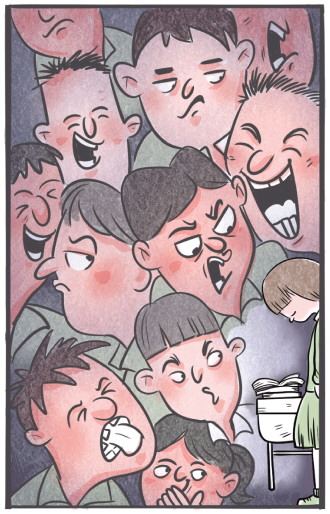 很快,李小丸感觉到,“在学校做什么都是错的”。她开始害怕去食堂、宿舍或操场,甚至不敢上厕所,想方设法避开那几个女生。她们的态度影响了其他同学,有一次做广播体操,在扩胸运动那一节,李小丸听见身后一片笑声。
