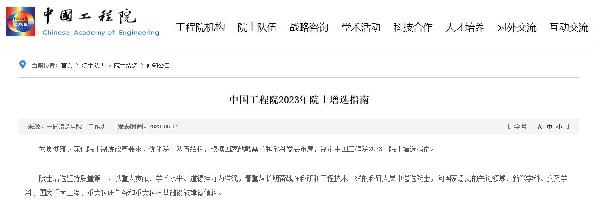 央视网消息:近日,中国工程院发布《中国工程院2023年院士增选指南》。主要内容如下: