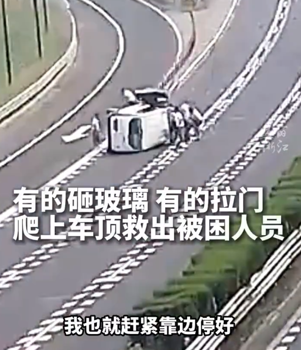 ·感谢!汽车侧翻,多名路过司机停车相救,高速交警给他们致电表示感谢。