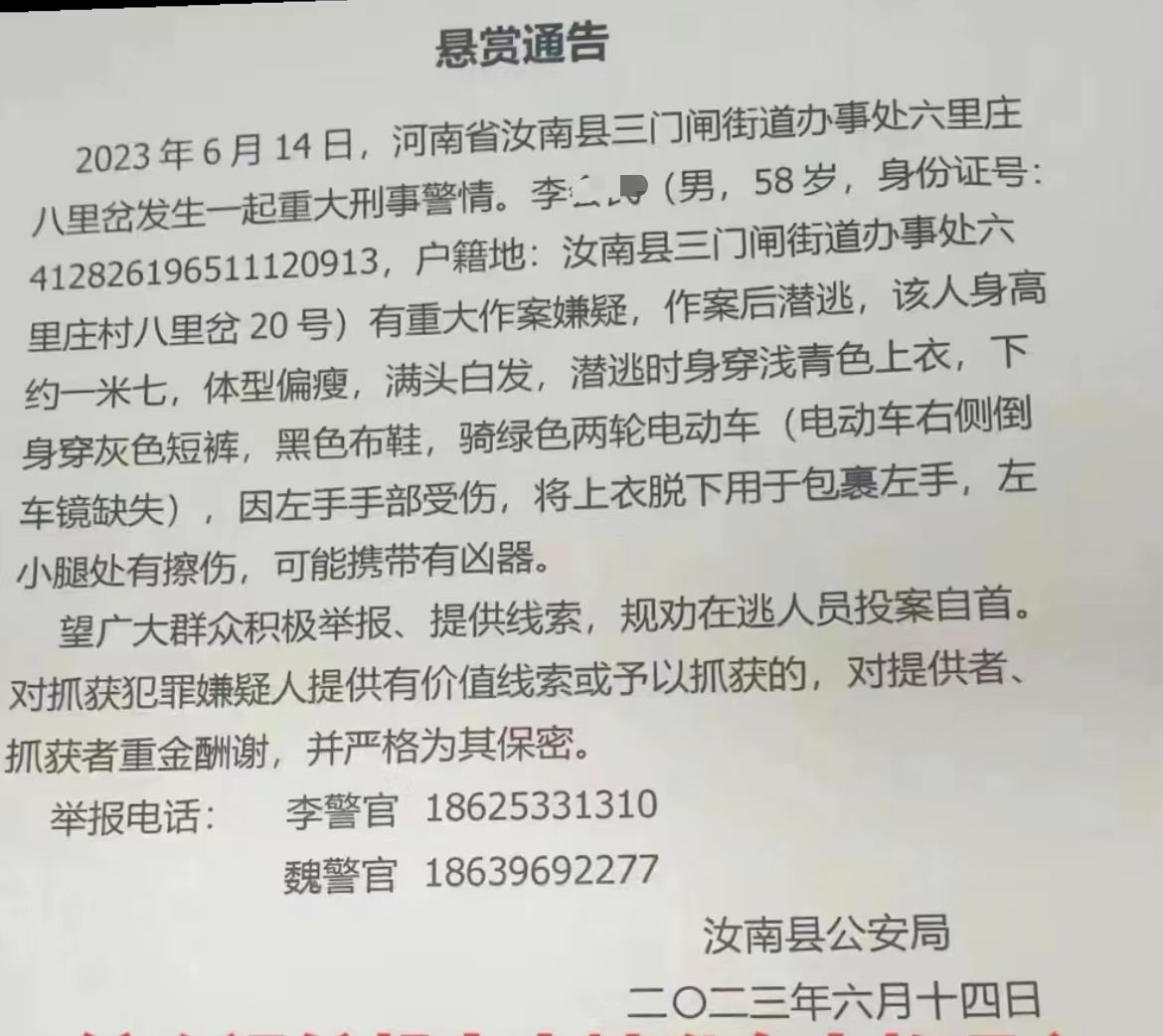 ·河南省汝南县疑似发生两人被杀命案,民警:犯罪嫌疑人已被抓获。