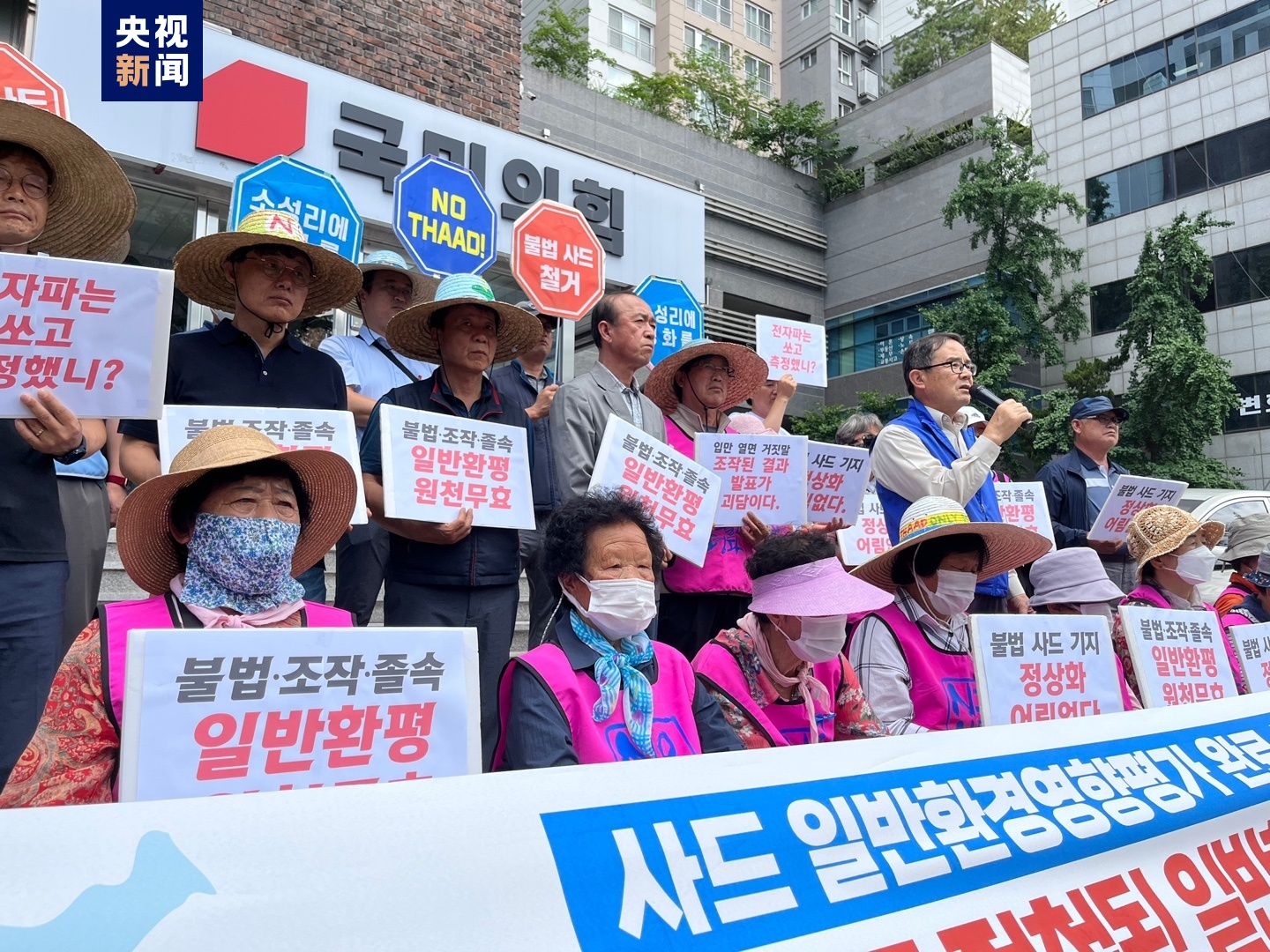 6月21日,韩国政府宣布完成针对“萨德”基地的环境影响评价,称基地电磁波等对人体影响微乎其微,部署地民众对相关评价结果表示抗议。(总台记者 唐鑫)
