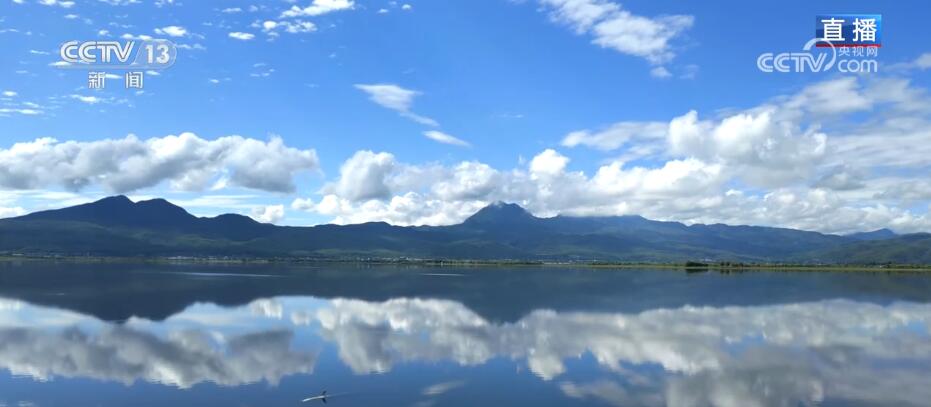 总台记者 郭琳洁:欢迎大家跟随镜头领略高原湿地的美景。我身后的拉市海湿地位于丽江城西,蓝天白云下,湖面波光粼粼、清澈见底,湖面海拔2000多米,湿地面积35.60平方公里。四周山岭环绕,夏季水草丰茂,岸边垂柳依依,草甸碧绿如洗,远望则能看到雪山森林,湖光山色相互映衬,形成了独特绚丽的自然景观。