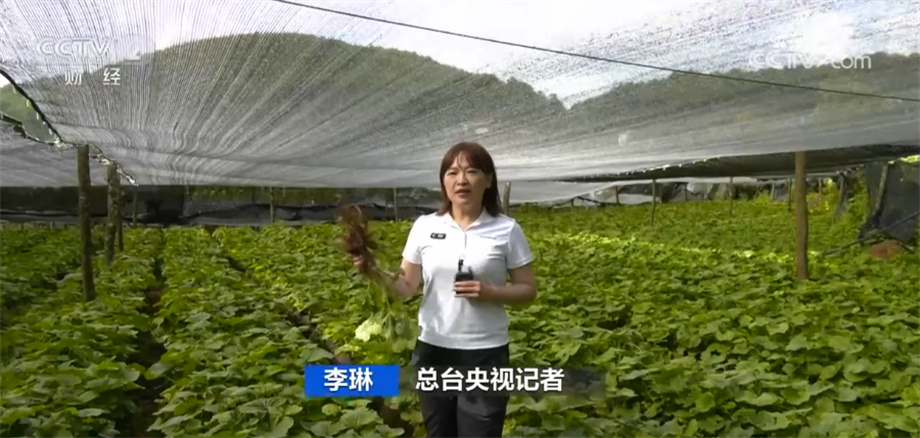 总台央视记者 李琳:这里是海拔2385米,而山葵的种植条件就必须要在这样高于2200米的山上,大家看到种植户们为了避免山葵被阳光暴晒,还准备了遮阴棚。在这样严格的环境要求下,山葵一年四季都可以种植,它的茎叶的生长周期为4—5个月,所以每年可收获春秋两季。而山葵根部的生产周期要达到一年半,营养价值更高,价格也更贵。