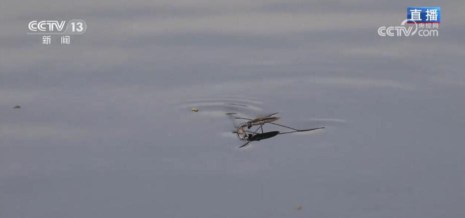 如今,焕发活力的伊通河不仅让河岸边的游客多了起来,连一些许久不见的昆虫也重新现身。这种只能在干净水面上行走的小虫子叫水黾,因为有污染的水质会破坏水体表面张力,造成它不能行走,所以它的出现从侧面也检验出水质的改善。