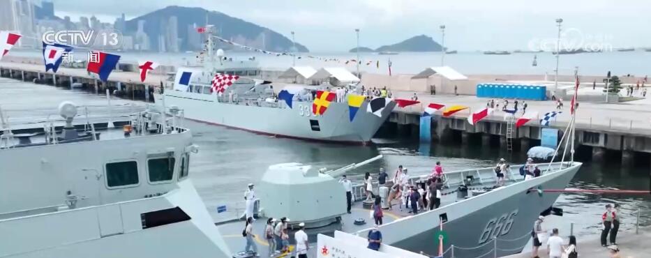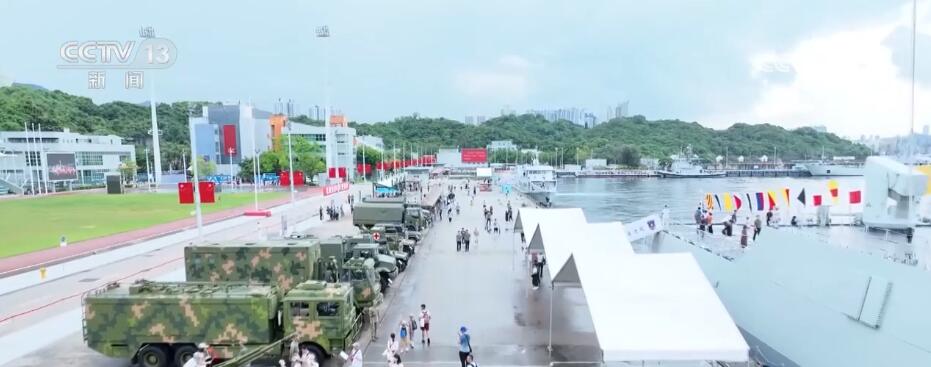 观看完精彩的军事课目,市民们纷纷前往昂船洲军港上舰参观,与驻军官兵互动交流。