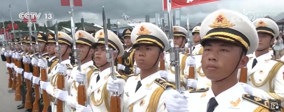 在驻香港部队昂船洲军营,海军各型舰艇已经挂上了满旗。上午10时,军营举行隆重的升国旗仪式,驻香港部队三军仪仗队昂首阔步护旗而出。