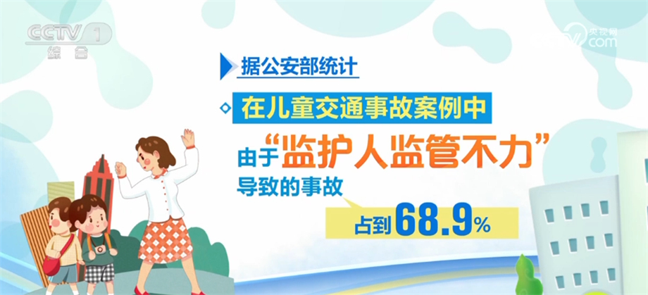 暑假期间,涉及儿童的交通事故较为频繁。据公安部统计,在儿童交通事故案例中,由于“监护人监管不力”导致的事故占到68.9%。