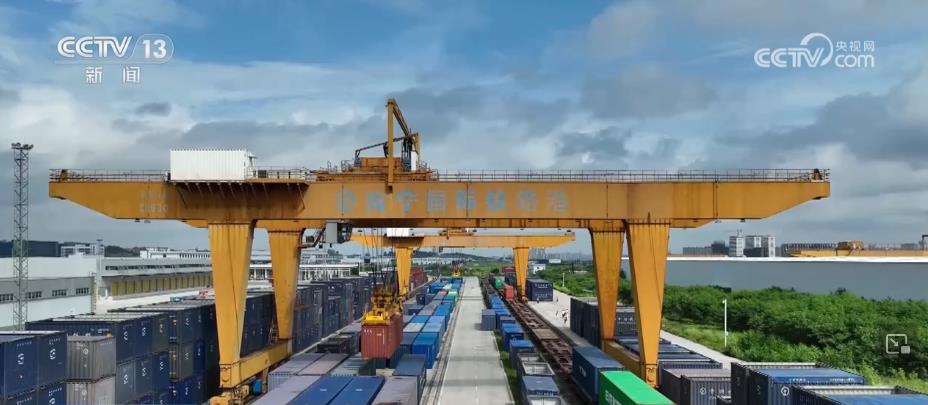 7月20日,满载日用品、电子产品、建材产品等55个集装箱货物的列车从广西南宁国际铁路港出发,经新疆阿拉山口铁路口岸出境,发往哈萨克斯坦阿拉木图。