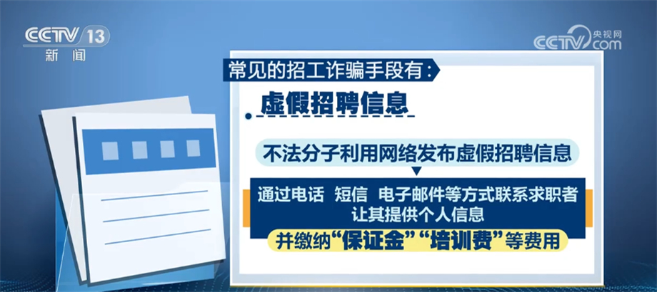 央视网消息:生活中常见的招工骗局有哪些?求职者应该如何识别?一旦求职者遇到诈骗,又该如何保护自己的合法权益呢?